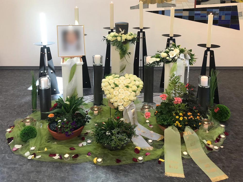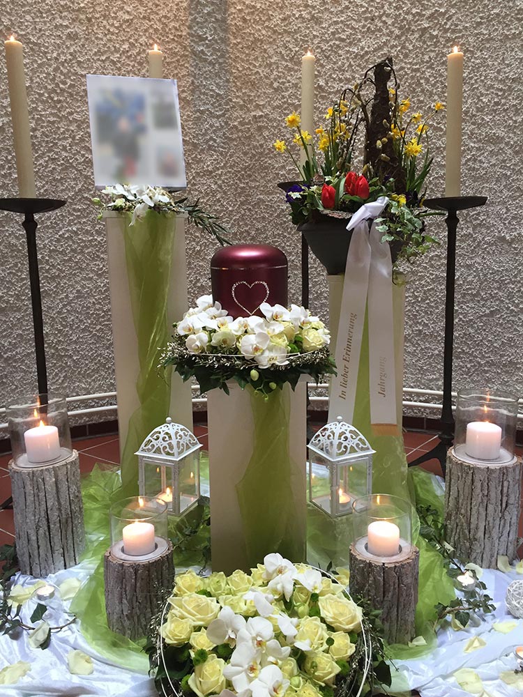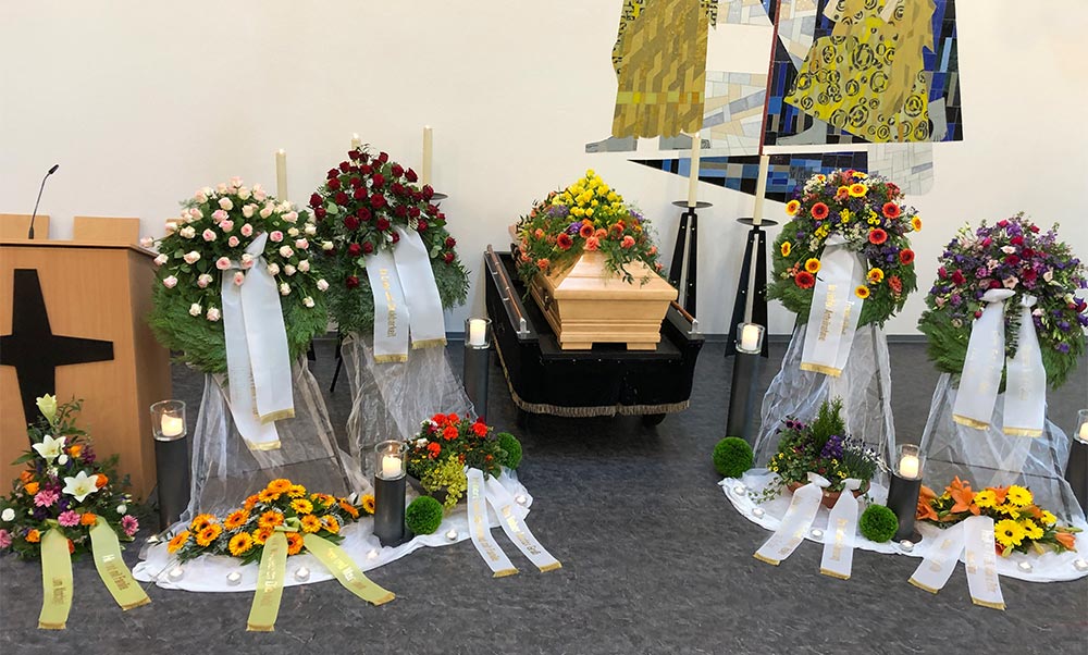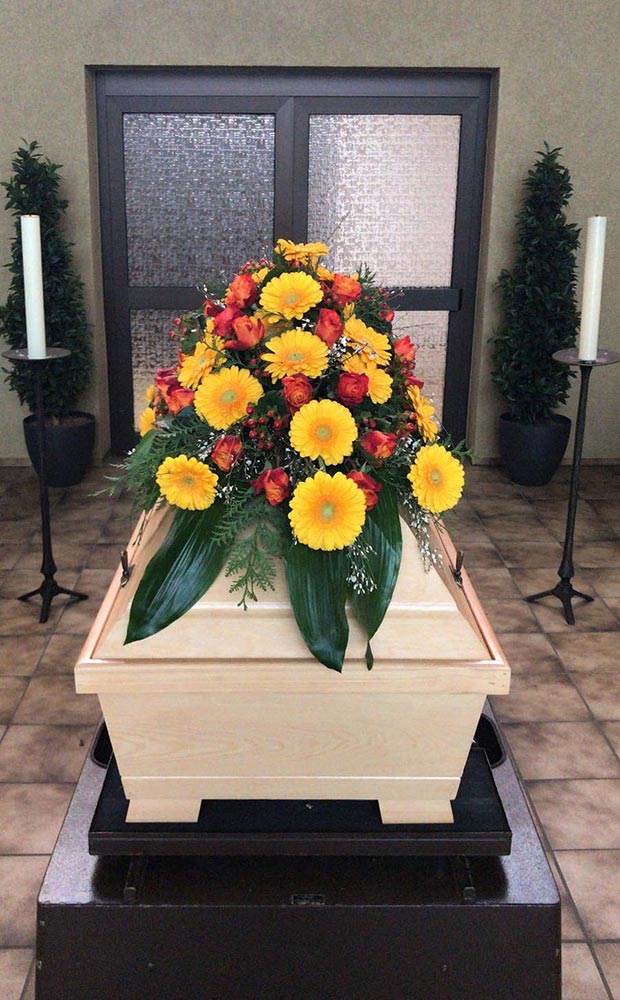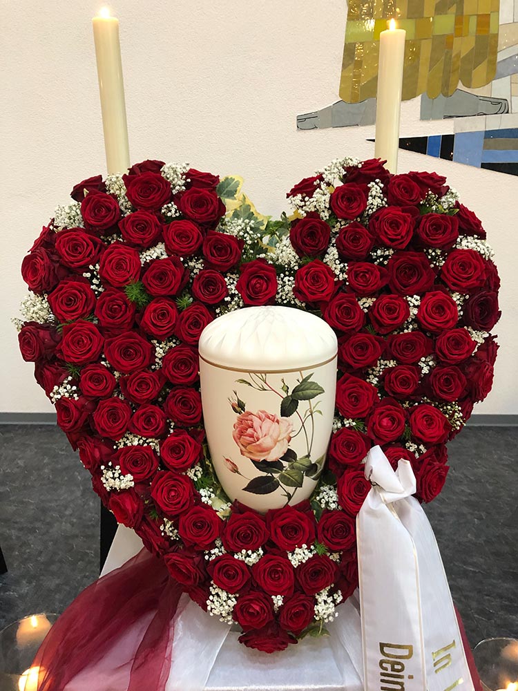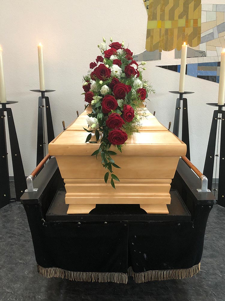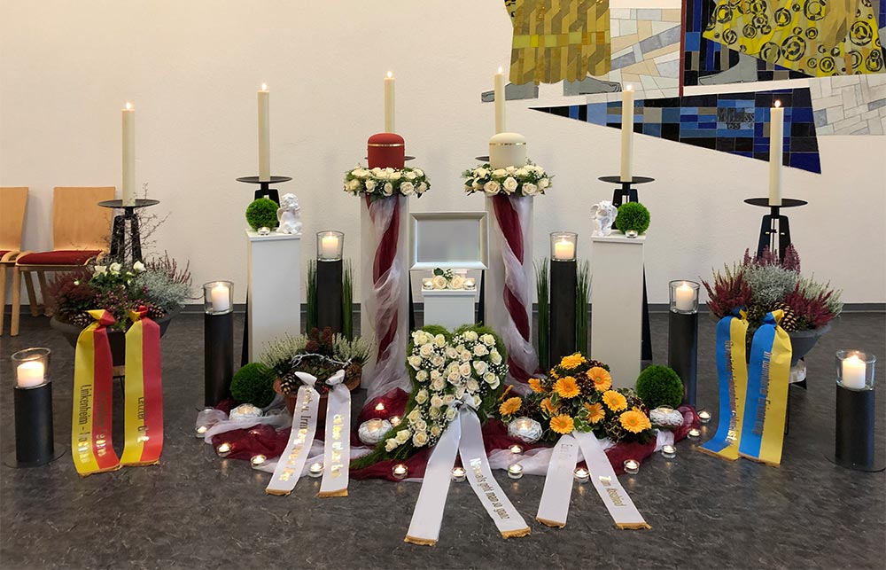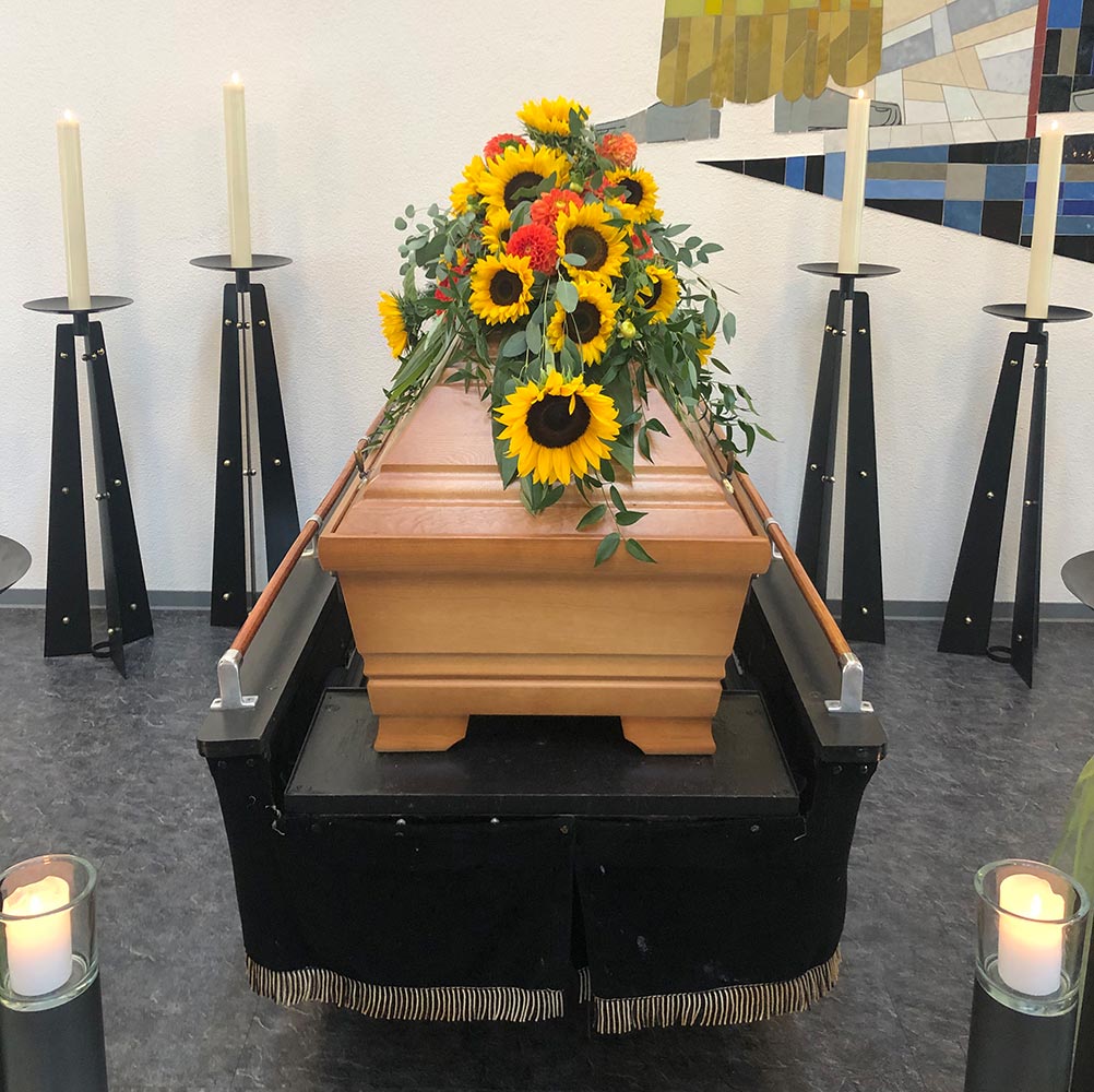 So individuell wie der Mensch, so sollte auch sein Abschied sein. Wir planen gemeinsam mit Ihnen die Dekoration für die Trauerfeier und helfen Ihnen bei der Auswahl und Besorgung von Trauerdekoration sowie Blumen und Kränzen. Dabei berücksichtigen wir Ihre ganz individuellen Wünsche. Trauer-Arrangements Zurück Weiter Zurück Weiter Sargschmuck Zurück Weiter Urnenschmuck Zurück Weiter Wir sind Tag & Nacht für Sie erreichbar Fon 07255 / 8559 Mobil 0176 64889120