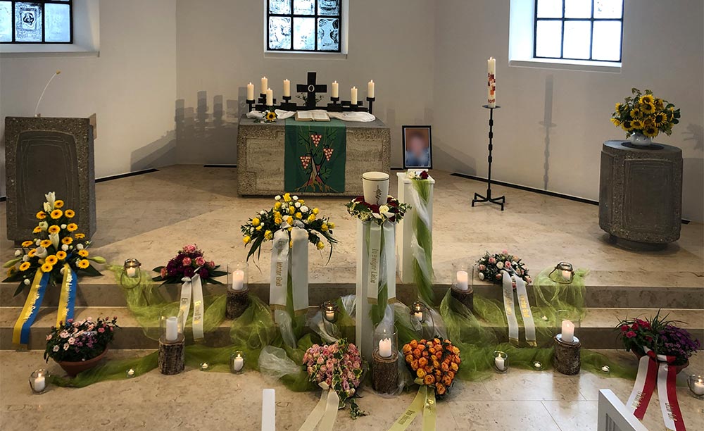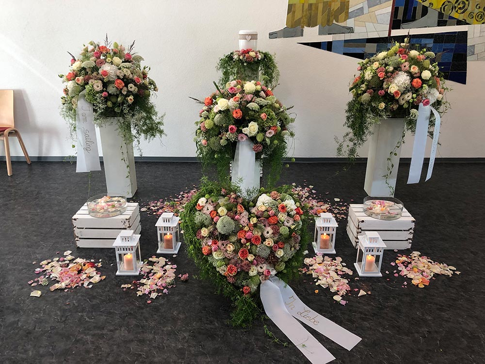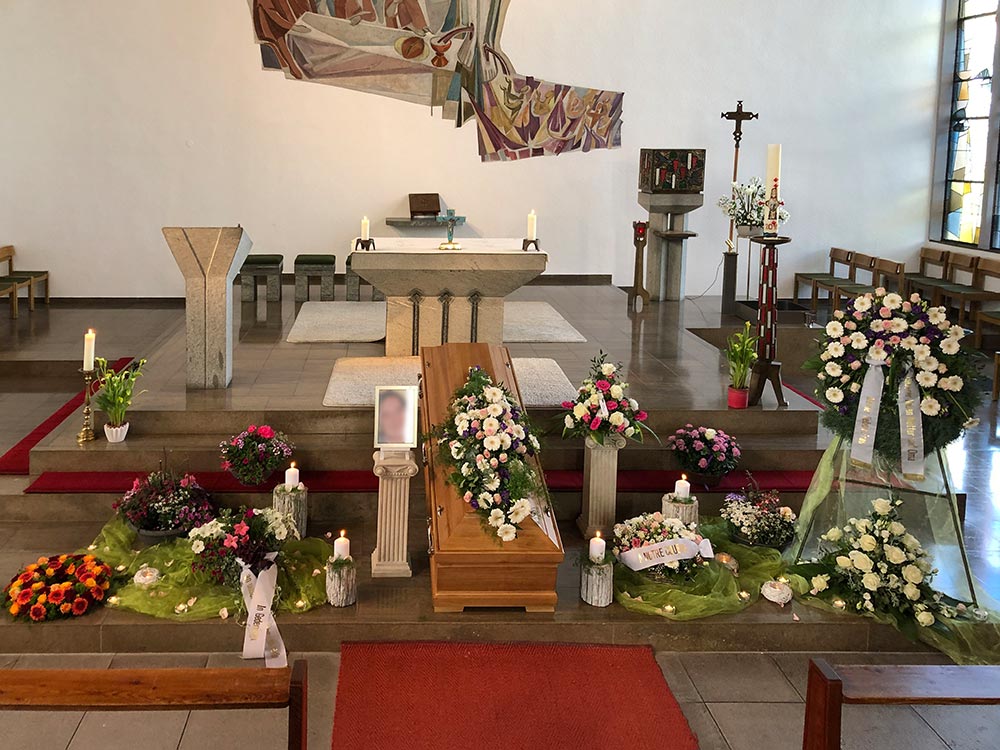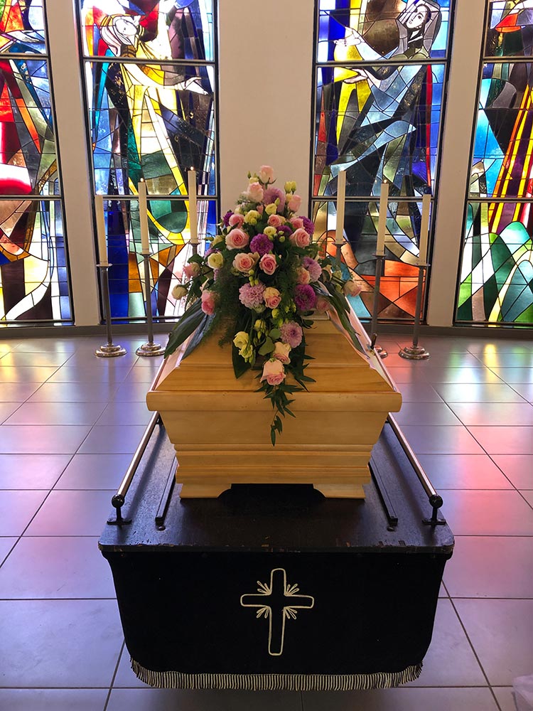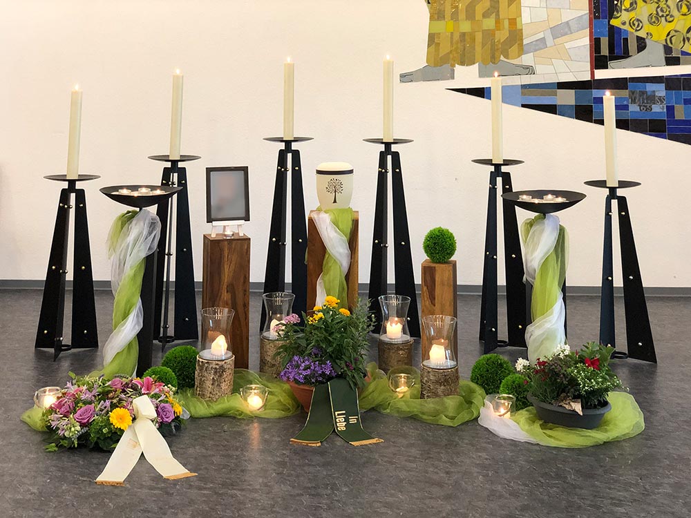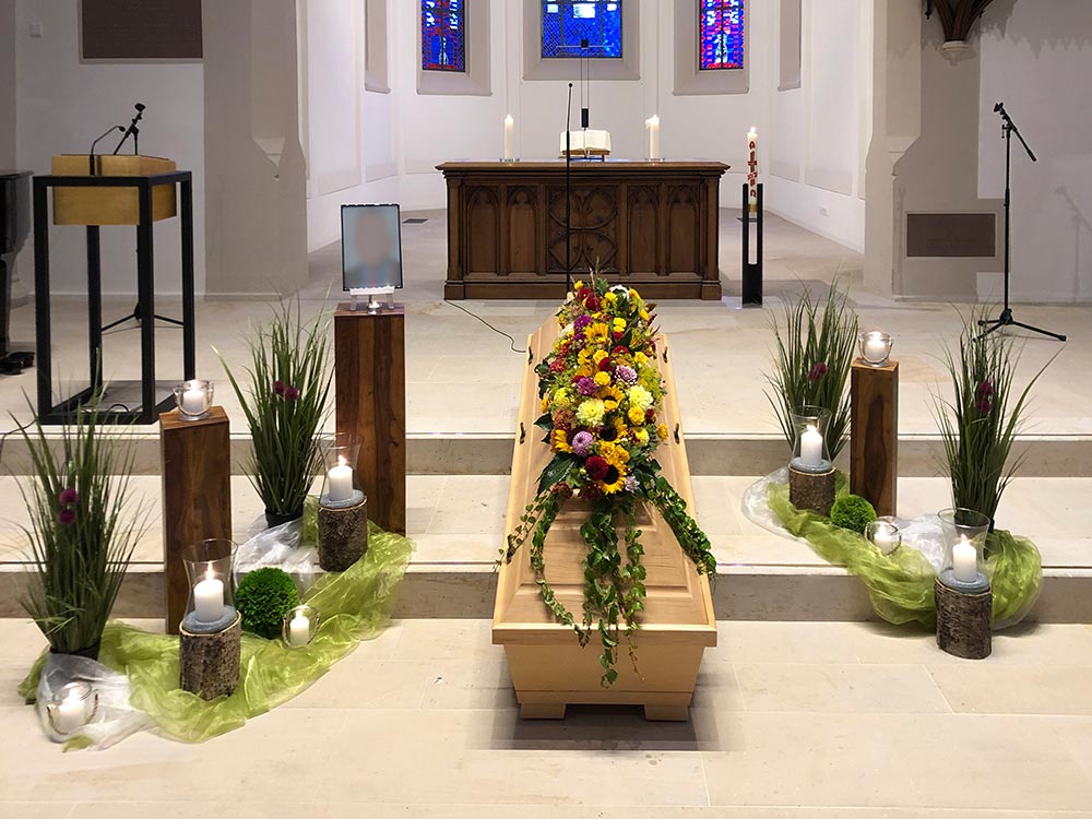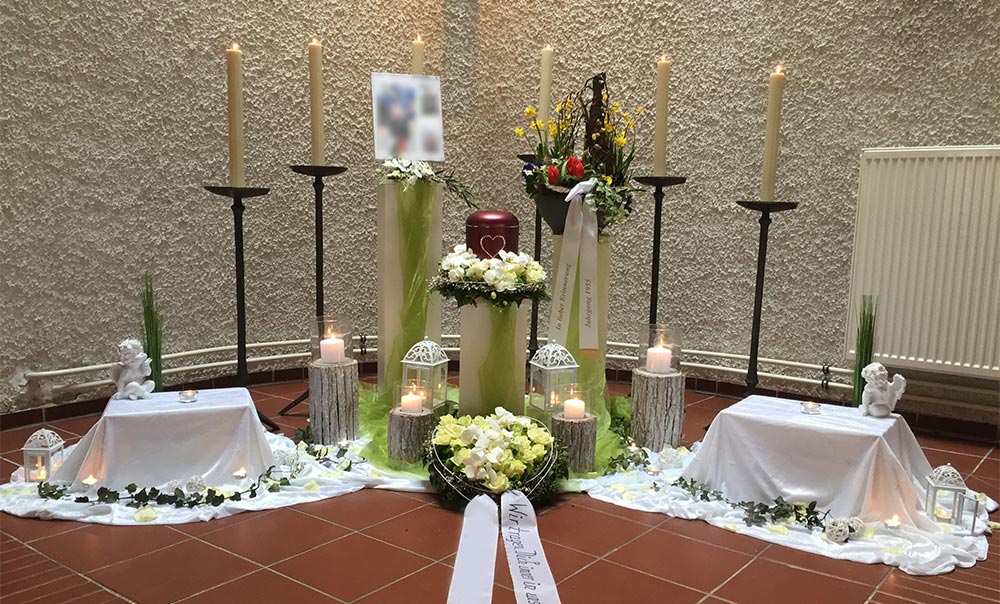 So individuell wie der Mensch, so sollte auch sein Abschied sein. Wir planen gemeinsam mit Ihnen die Dekoration für die Trauerfeier und helfen Ihnen bei der Auswahl und Besorgung von Trauerdekoration sowie Blumen und Kränzen. Dabei berücksichtigen wir Ihre ganz individuellen Wünsche. Trauer-Arrangements Zurück Weiter Zurück Weiter Sargschmuck Zurück Weiter Urnenschmuck Zurück Weiter Wir sind Tag & Nacht für Sie erreichbar Fon 07255 / 8559 Mobil 0176 64889120